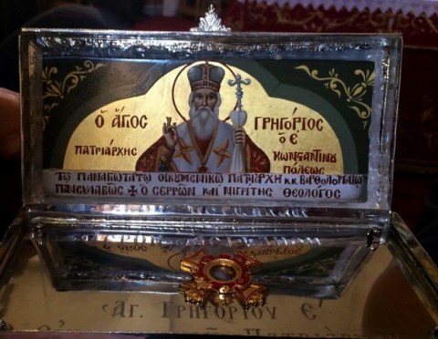 Ο Μητροπολίτης Σερρών Θεολόγος στην προσφώνησή του προς τον Οικουμενικό Πατριάρχη εξήρε την προσωπικότητα, το έργο και τη διακονιά του Προκαθήμενου του Γένους και της μαρτυρικής Μητέρας Εκκλησίας του Οικουμενικού Πατριαρχείου και προσέφερε ως δώρα προς τον Πατριάρχη Βαρθολομαίο μια λειψανοθήκη με απότμημα του ιερού λειψάνου του μαρτυρικού Οικουμενικού Πατριάρχη Γρηγορίου Ε”, καθώς μια εικόνα του νεομάρτυρα Αγίου Νικήτα του Νέου, τοπικού Αγίου της Εκκλησίας των Σερρών.