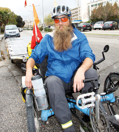 Στις Σέρρε βρέθηκε Ο Ελβετός Ντέιβιντ Μπρατεμπέργκερ που γυρνά σε όλη την Ευρώπη πάνω σε ένα ποδήλατο που έχει πάνελ ηλιακής ενέργειας.