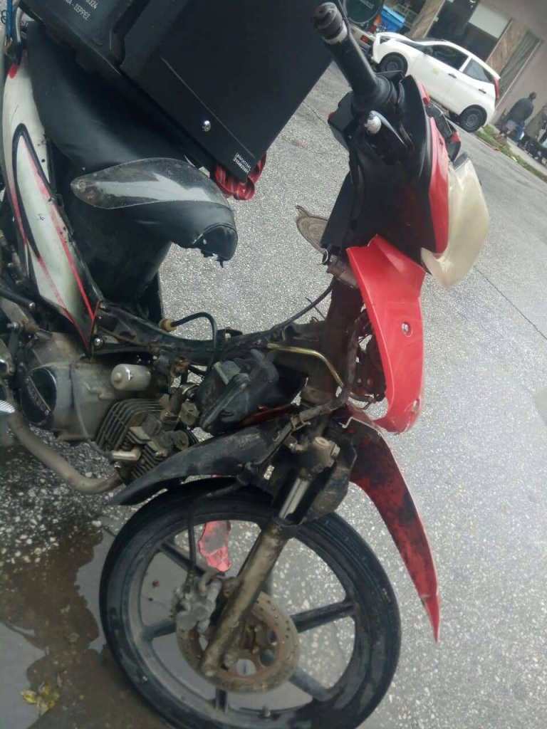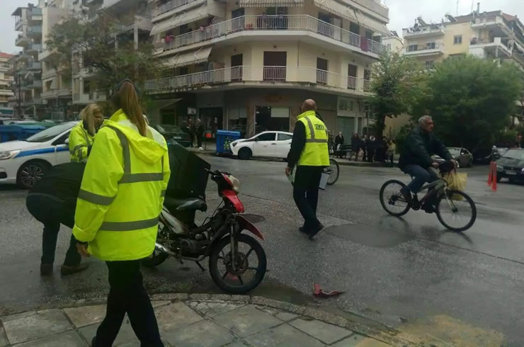 Σύμφωνα με τον ηλικιωμένο οδηγό του αυτοκινήτου ο νεαρός οδηγός του δικύκλου που ήταν και ταχυμεταφορέας , έπεσε πάνω στο αυτοκίνητο , γλιστρώντας στο οδόστρωμα.