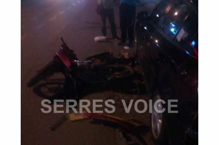Ευτυχώς, ο αναβάτης του δικύκλου φορούσε κράνος και έτσι απέφυγε τα χειρότερα από το τροχαίο, ωστόσο για προληπτικούς λόγους διακομίστηκε με ασθενοφόρο του ΕΚΑΒ στο Γενικό Νοσοκομείο Σερρών.