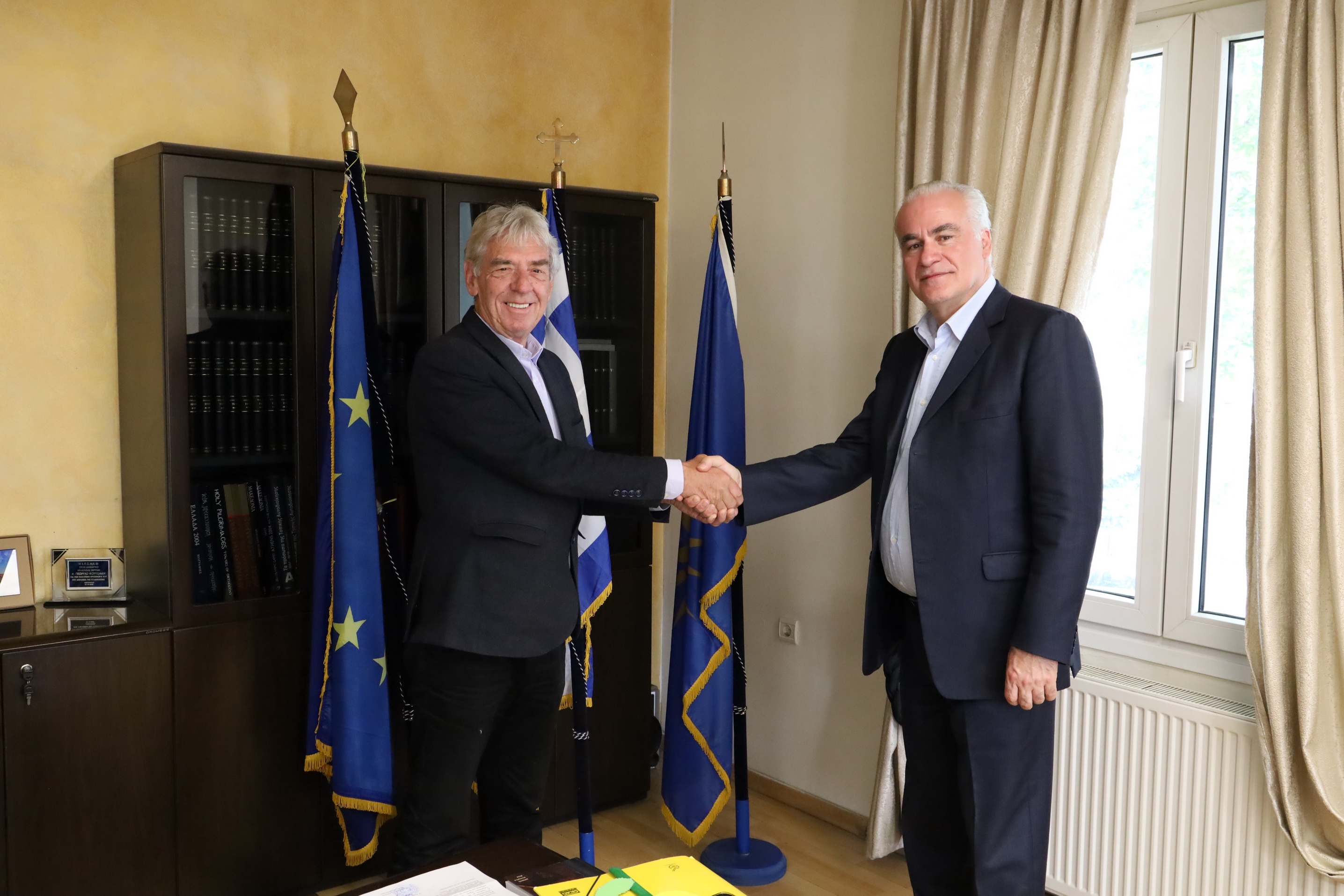 Στον Δήμο Ηράκλειας ο κ.Βέρρος επισκέφθηκε τον Δήμαρχο Γιώργο Κουτσάκη στο γραφείο του, με τον οποίο συνομίλησε για θέματα λειτουργίας του Δήμου αλλά και για έργα που είναι σε εξέλιξη στην περιοχή. Ενημερώθηκε για τα Νομικά Πρόσωπα και τις Δομές του Δήμου και συζήτησε με τον κ.Κουτσάκη τόσο για τις επερχόμενες εθνικές εκλογές όσο και για τις αυτοδιοικητικές του Οκτωβρίου.