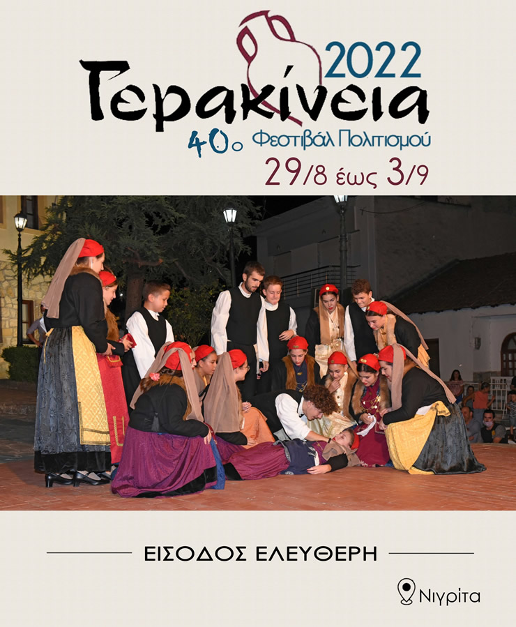 Το 40ο Φεστιβάλ Πολιτισμού «Γερακίνεια 2022» θα πραγματοποιηθεί από τις 29 Αυγούστου έως τις 3 Σεπτεμβρίου 2022 στη Νιγρίτα Σερρών.