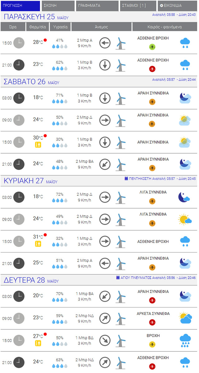 Δείτε τον καιρό στο γράφημα που ακολουθεί