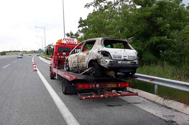 Στο σημείο έσπευσε πυροσβεστικό όχημα, ωστόσο, η καταστροφή του οχήματος, όπως φαίνεται και στη φωτογραφία είναι ολοκληρωτική.
