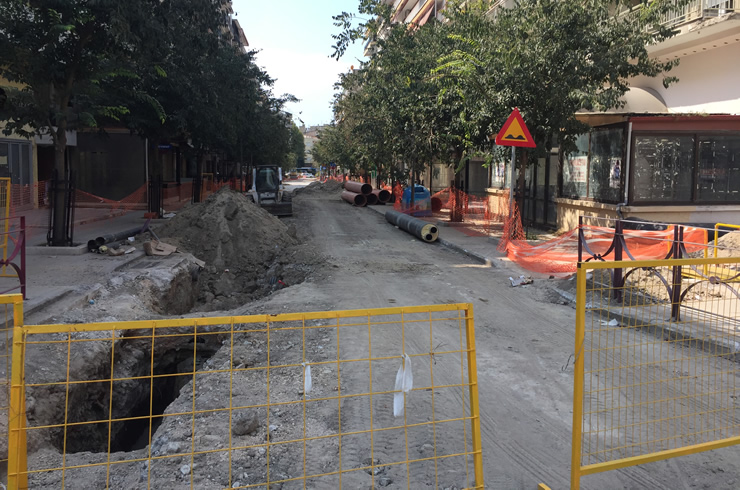 Εκτός χρονοδιαγράμματος η αποπεράτωση των εργασιών στην οδό Εθνικής Αντίστασης αφού οι εργασίες έχουν σταματήσει εδώ και ένα μήνα.