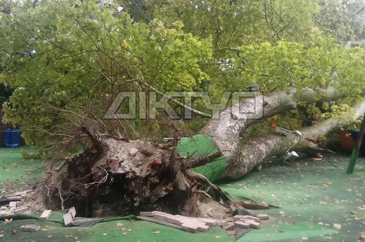 Το περισταικό συνέβη την Παρασκευή και αιτία είναι ότι σάπισε η ρίζα του δέντρου από τα πολλά νερά.