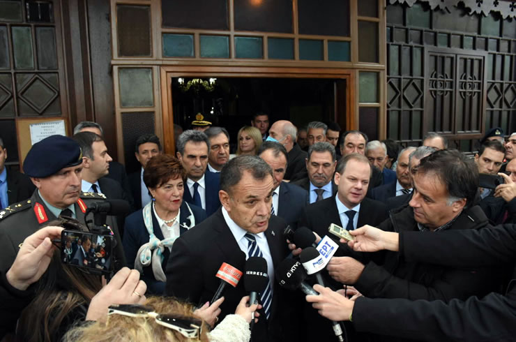 Ευχαριστώντας τον Δήμαρχο Εμμανουήλ Παπά Δημήτρη Νότα για τη φιλοξενία και για τα όσα είπε για το πρόσωπο του, ο κ. Παναγιωτόπουλος είπε: «η Εθνική άμυνα δεν είναι υπόθεση ενός ανθρώπου, μόνο του αρμόδιου Υπουργού, βασικά είναι υπόθεση των Ενόπλων Δυνάμεων. Μπορεί να είμαι εγώ προϊσταμένη αρχή, αλλά η δουλειά, που βγαίνει και η επιπλέον δουλειά, που θα βγει είναι υπόθεση πολλών ανθρώπων, της πολιτικής ηγεσίας στο σύνολο της και της στρατιωτικής ηγεσίας, του Αρχηγού ΓΕΕΘΑ, των αρχηγών των επιτελείων και βέβαια των στελεχών από τα επιτελεία μέχρι το τελευταίο ακριτικό φυλάκιο στην τελευταία άκρη της επικράτειας. Οι Ένοπλες δυνάμεις είναι μια “καλολαδωμένη” μηχανή, με στελέχη με ήθος, με πατριωτικό αίσθημα, με αίσθηση καθήκοντος, με επαγγελματισμό, με ψυχή. Η δική μας δουλειά και η δουλειά που κάνουμε πολύ εντατικά τα τελευταία χρόνια, και νομίζω ότι αυτό προκύπτει, είναι να βοηθήσουμε τα στελέχη των ενόπλων δυνάμεων να κάνουν καλά τη δική τους δουλειά, αυτοί ξέρουν ποια είναι και πώς να την κάνουν. Σας ευχαριστώ για τα καλά σας λόγια. Είναι τιμή για μένα να βρίσκομαι εδώ και να ακούω τόσο καλά λόγια. Εξ ονόματος των Ενόπλων Δυνάμεων στο σύνολο τους τα αποδέχομαι. Δεν είναι δουλειά ενός ανδρός. Εγώ κάνω αυτό που πρέπει, αλλά είναι δουλειά πολλών και για αυτό έχει αποτέλεσμα».
