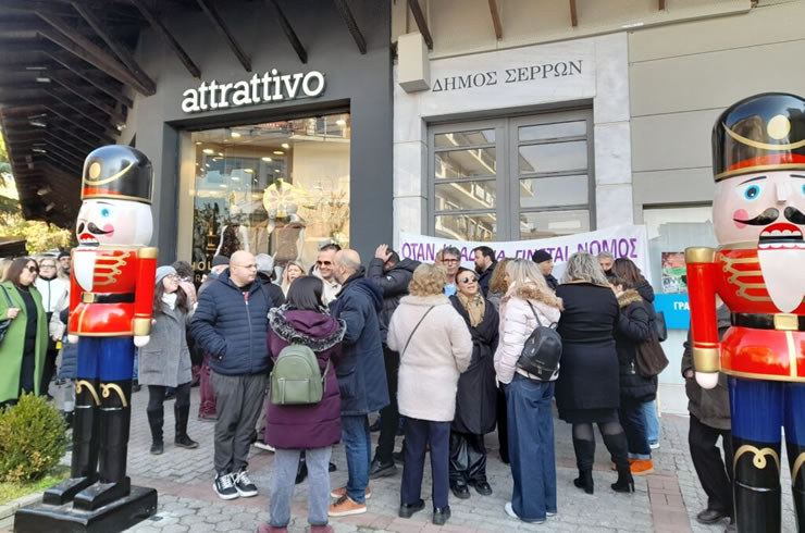 Μπροστά στο Δημαρχείο Σερρών πραγματοποιήθηκε στις 12 το μεσημέρι της Τρίτης 16 Δεκεμβρίου 2025 συγκέντρωση διαμαρτυρίας δημοτικών υπαλλήλων και δημοτικών συμβούλων.