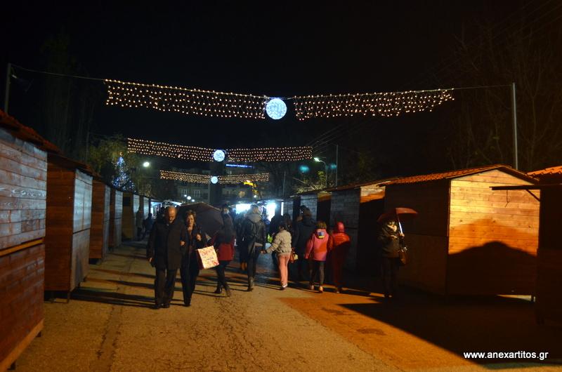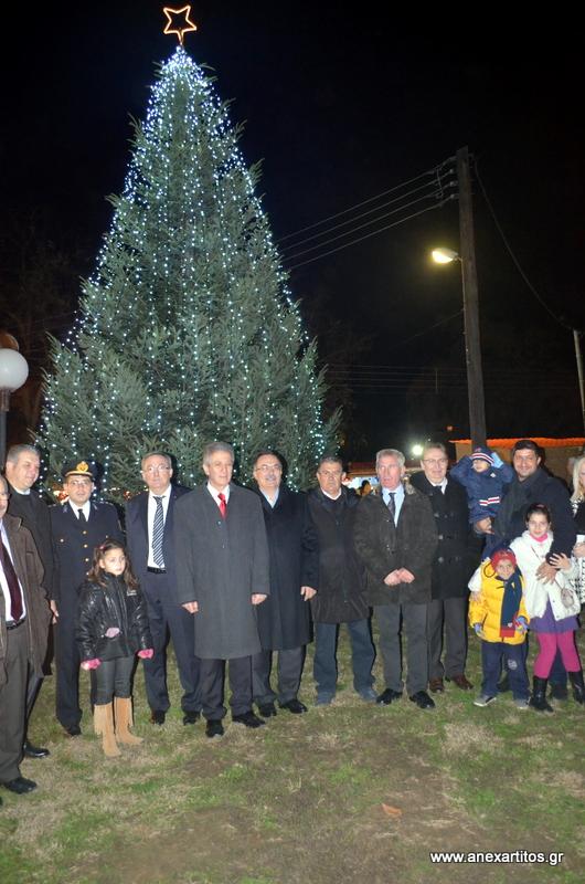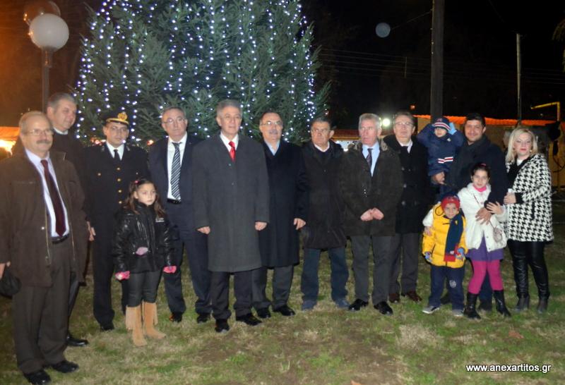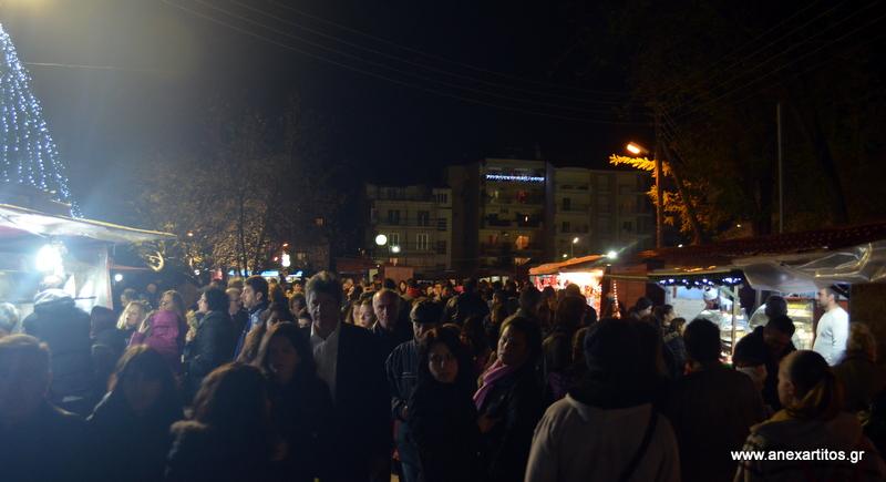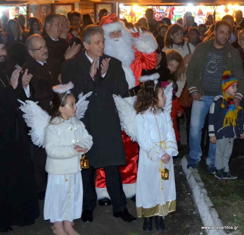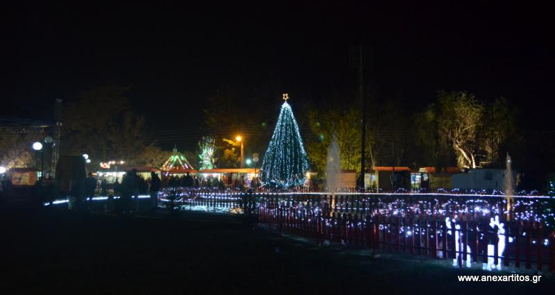 Στις 8 το βράδυ ο Δήμαρχος Σερρών κ. Πέτρος Αγγελίδης χαιρέτισε την εκδήλωση και στη συνέχεια  φωταγώγησε το τεράστιο Χριστουγεννιάτικο δέντρο που στήθηκε για να κοσμήσει την «Πολιτεία των Ευχών».