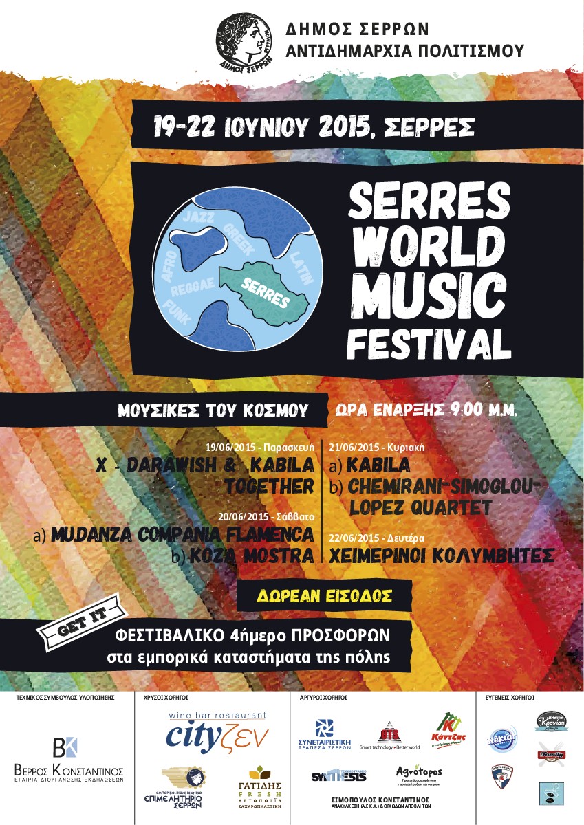 Φέτος, με τον νέο μουσικό θεσμό που ξεκινούμε στις Σέρρες, το τετραήμερο Φεστιβάλ "ΜΟΥΣΙΚΕΣ ΤΟΥ ΚΟΣΜΟΥ", φιλοδοξούμε να γίνει η πόλη μας πανελλήνιο βήμα ανάδειξης των Μουσικών του Κόσμου.