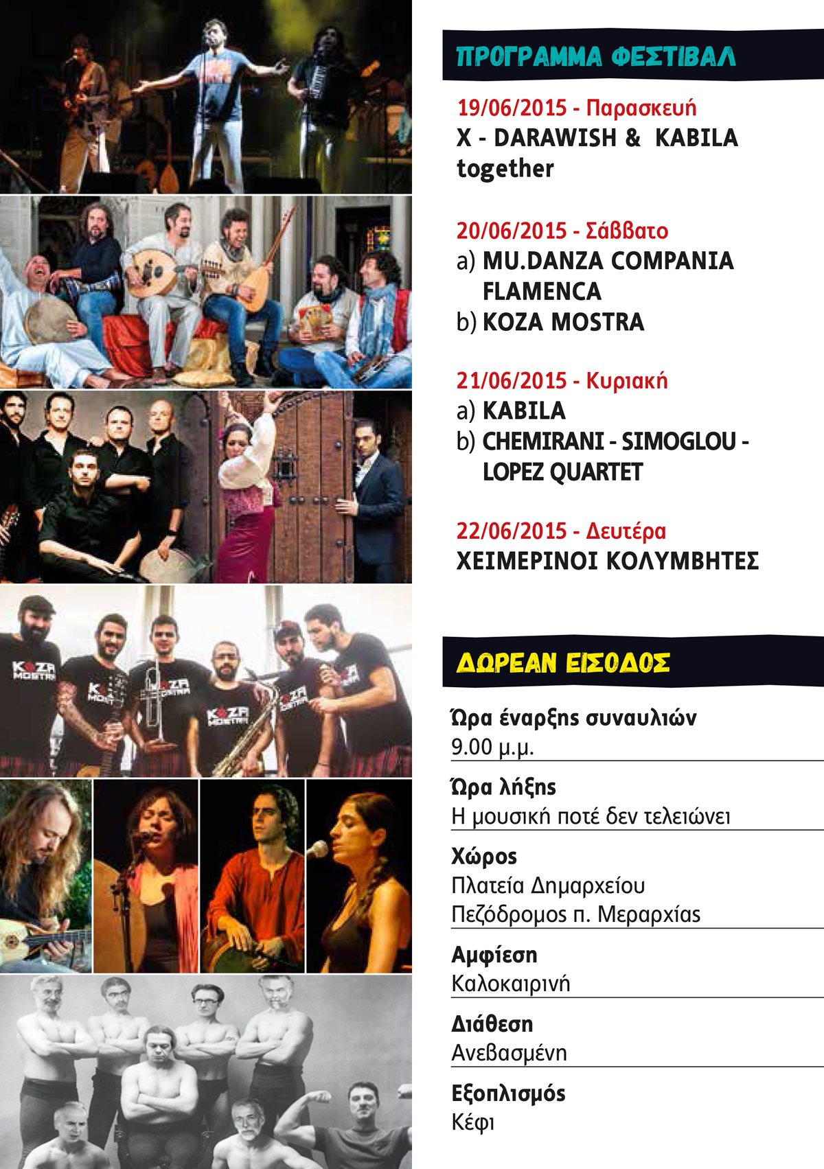-- Ωρα έναρξης συναυλιών: 9.00μμ - Είσοδος ΔΩΡΕΑΝ --
