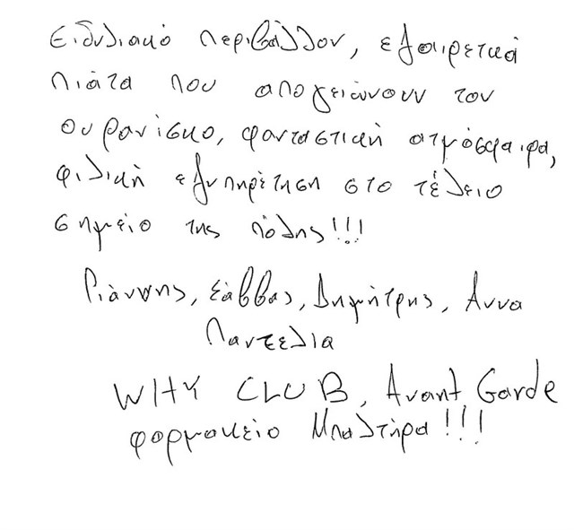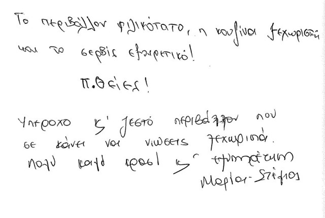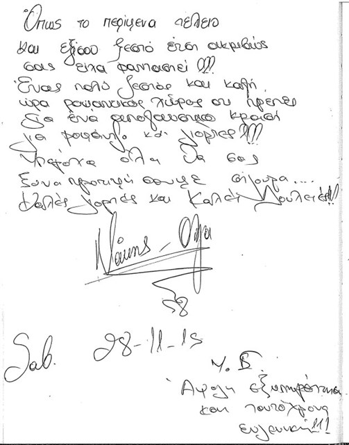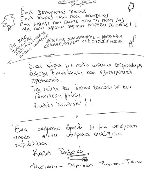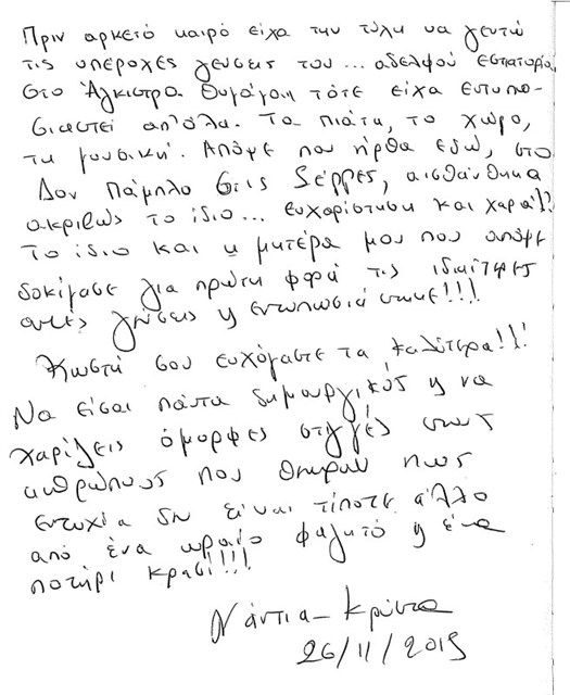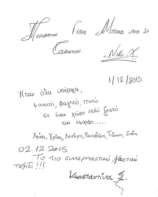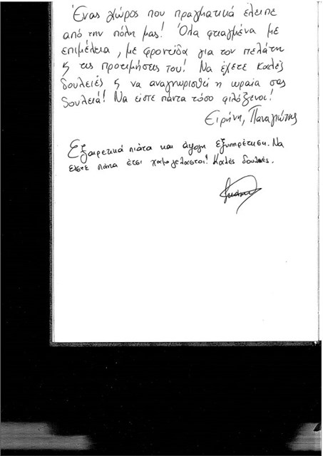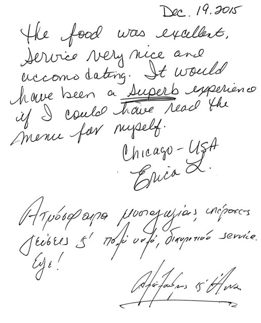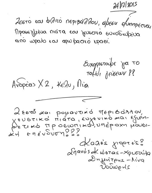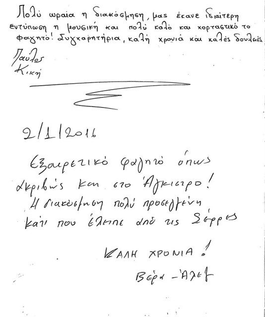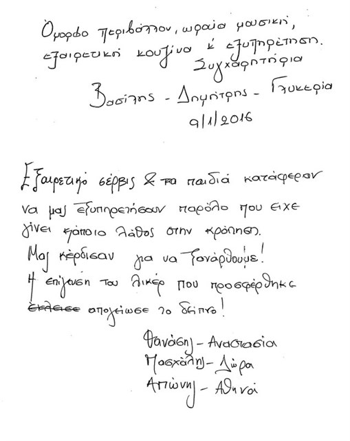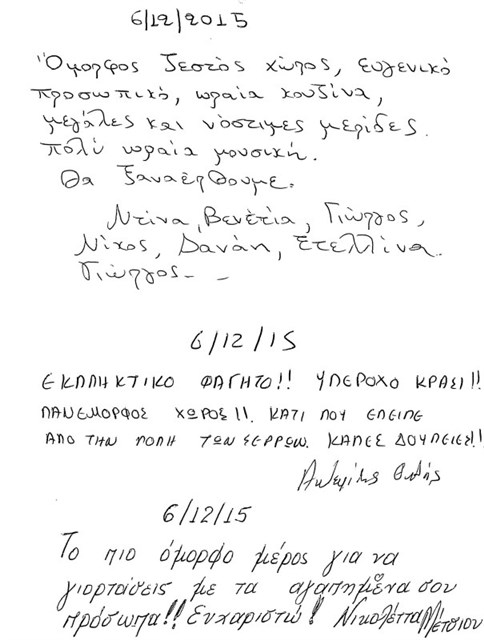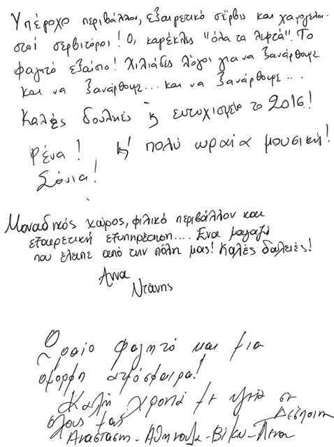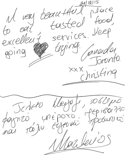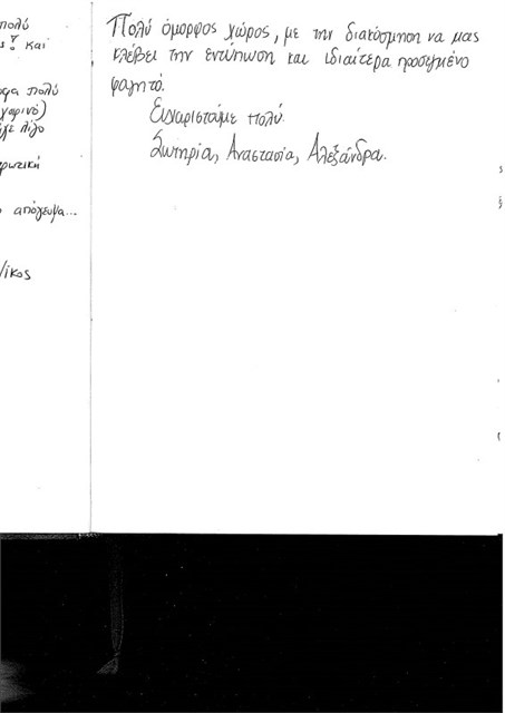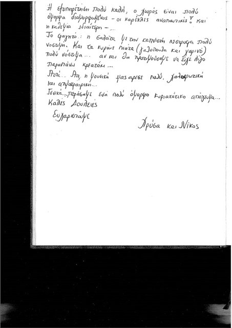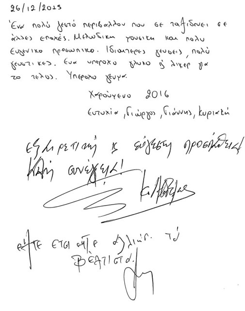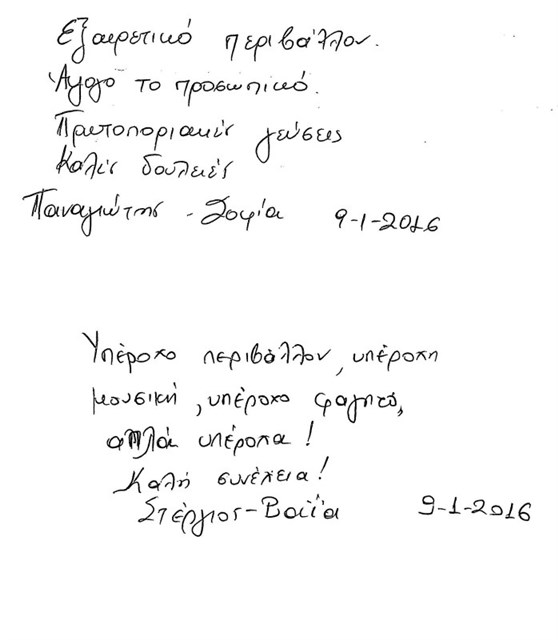 Δεν φτάνει, όμως, μόνο η δική μας εντύπωση, έφτασε ο καιρός να ανοίξουμε το βιβλίο επισκεπτών που βρίσκεται στο χώρο του εστιατορίου και εκεί έχει την ευκαιρία ο κάθε επισκέπτης να γράψει την γαστρονομική εμπειρία που αποκόμοισε από την επίσκεψή του στο πολυφημισμένο Δον Πάμπλο.