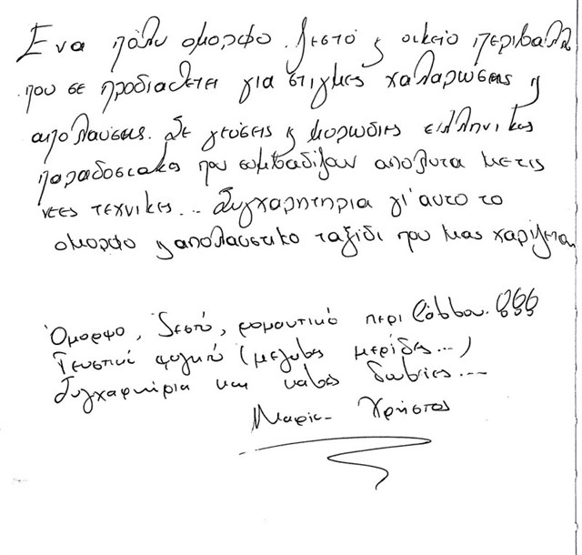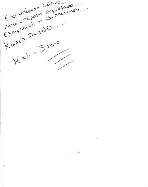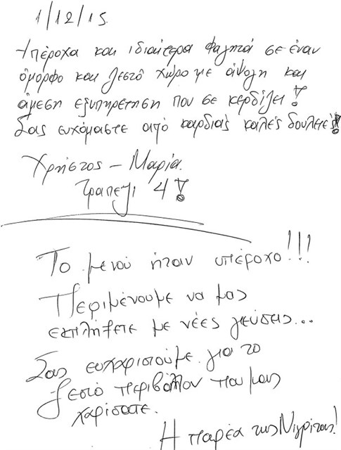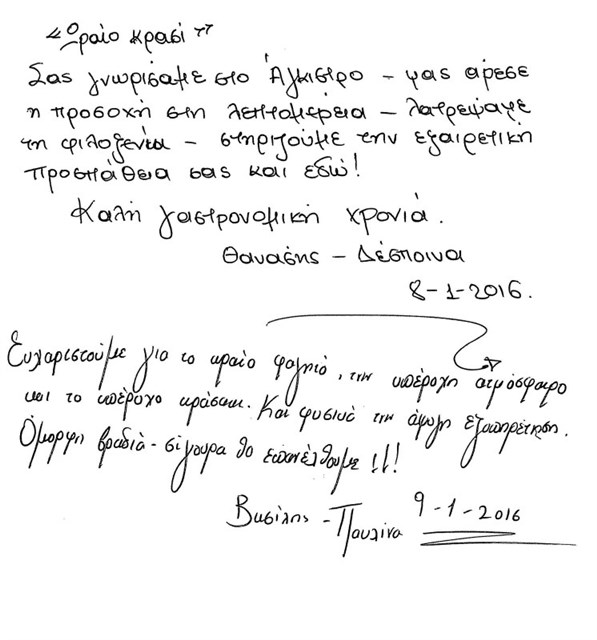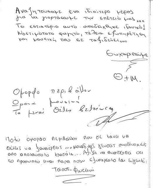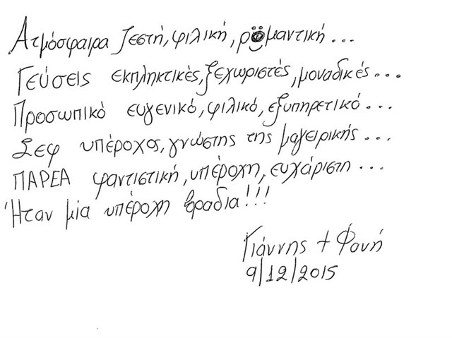 Κάπως έτσι νιώσαμε εμείς, τουλάχιστον, όταν το επισκεφτήκαμε και παρατηρήσαμε τους ανθρώπους δίπλα και γύρω μας που γευμάτιζαν. Άλλωστε η ευχαρίστηση είναι μια αίσθηση που ζωγραφίζεται με "ζωηρά χρώματα" στα πρόσωπα των ανθρώπων. Δεν κρύβεται ο ευχαριστημένος! Γελάνε και τα μουστάκια του!!!