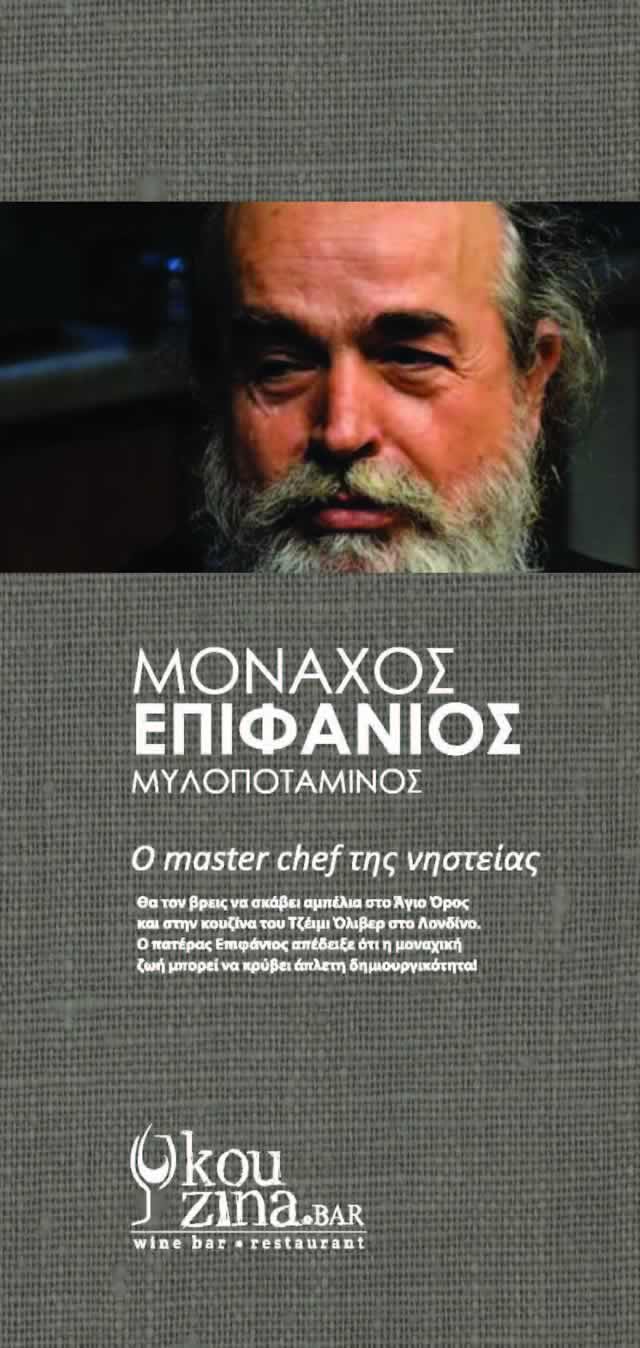 Περιζήτητος αρχιμάγειρας, συγγραφέας βιβλίου μαγειρικής και ιθύνων νους των κρασιών Μυλοποτάμου ο μοναχός Επιφάνιος ο Μυλοποταμινός μιλά στην «F.S.» για τη ζωή στο Όρος, δίνει συμβουλές υγιεινής διατροφής και ξεκαθαρίζει με χιούμορ πως οι «μοναχοί δεν είναι ούφο, αλλά κανονικοί άνθρωποι».