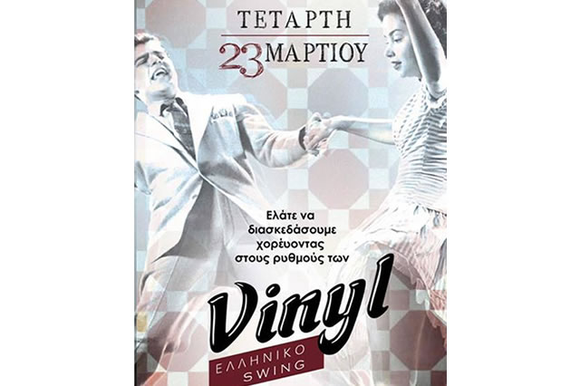 Μας προσκαλεί να διασκεδάσουμε χορεύοντας στους ρυθμούς των Vinyl, με ελληνικό κ ξένο swing παντρεμένο με νότες λάτιν κ τζαζ!Μην το χάσετε...