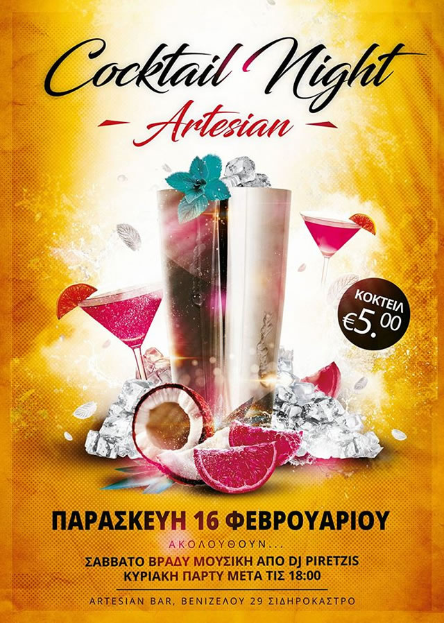 1: Παρασκευή 16/02 «cocktail party» με όλα τα cocktail μόνο 5€ !