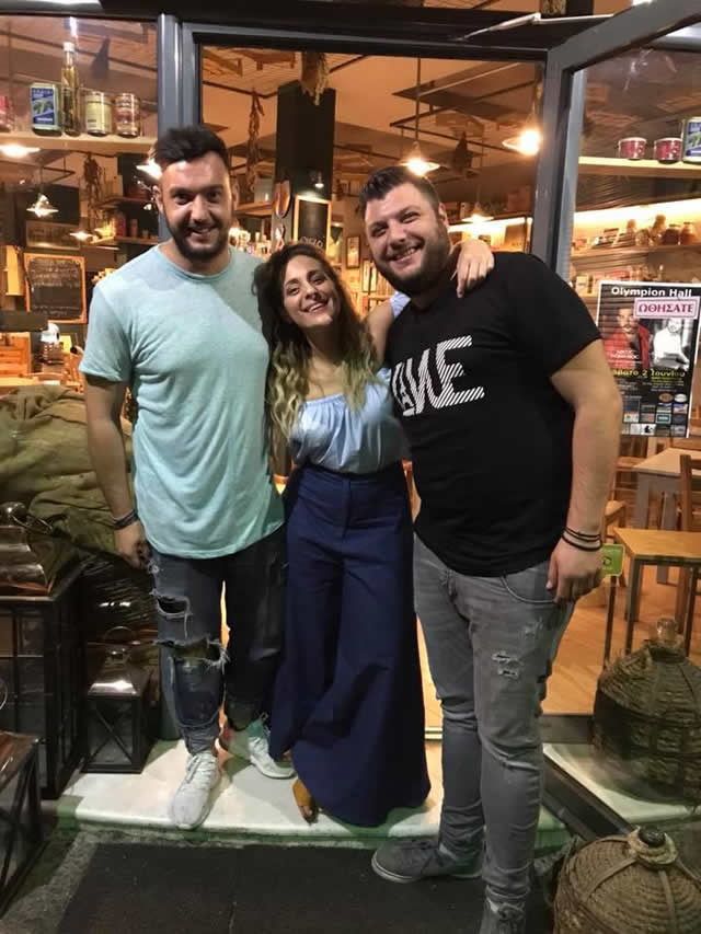 Αναμνηστική φωτογραφία της Νατάσας με τον ιδιοκτήτη του Μπακάλικου Θοδωρή Γουδή, και τον Νίκο Καζάκη