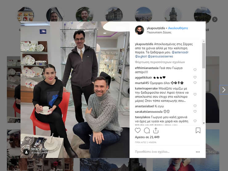 Μπορεί να αποκλείστηκε στα χιόνια στις Σέρρες, όμως ο Γιώργος Καπουτζίδης περνά τέλεια με τους συγγενείς του.