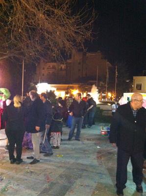 Έτσι κι εμείς ξεκινήσαμε με τα πόδια από το σπίτι, στο καρότσι η Αλεξανδρούλα μας και σε λιγότερο από δέκα λεπτά βρισκόμασταν στο κέντρο της πόλης. Οι δρόμοι γεμάτοι καρναβάλια, σερπαντίνες και κονφετί για χαρτοπόλεμο. Στον ουρανό βεγγαλικά άστραφταν διαρκώς. Οι πιτσιρικάδες σε κάθε γωνιά έσκαγαν δυναμιτάκια.( το μόνο ίσως αρνητικό για τα μωράκια τα οποία φοβούνται από τους δυνατούς ήχους…). Εγώ πάντως με του που έπιασε τη μικρή το παράπονο και με τις ματάρες της βουρκωμένες να  μου λέει μανούλα μου φοβάμαι… της έβαλα την κουκούλα της (2 για την ακρίβεια) και από εκείνη την ώρα ο ενθουσιασμός και το χαμόγελο ήταν ζωγραφισμένα στο πρόσωπό της.
