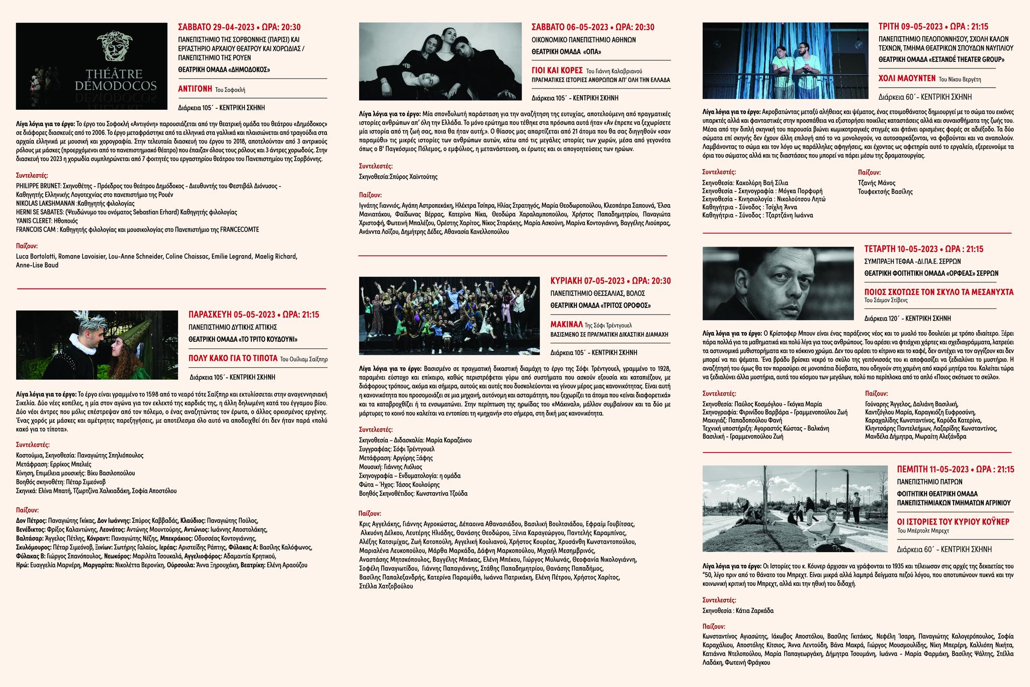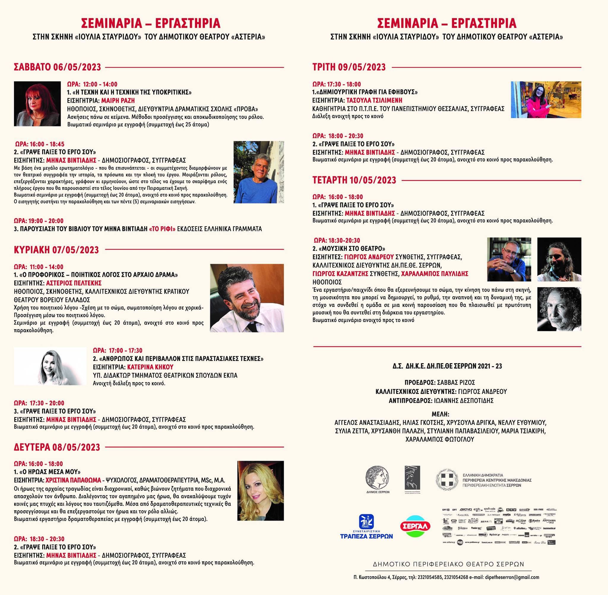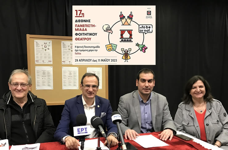 Συνέντευξη τύπου παρέθεσαν την Πέμπτη 27/04/2023 ο Δήμαρχος Σερρών Αλέξανδρος Χρυσάφης, ο Πρόεδρος του ΔΗ.ΠΕ.ΘΕ. Σερρών Σάββας Ρίζος, ο Καλλιτεχνικός Διευθυντής του θεάτρου Γιώργος Ανδρέου και οι συνεργάτες του θεσμού της 17ης Πανεπιστημιάδας που μπορείτε να διαβάσετε εδώ για την έναρξη της 17ης Διεθνή Πανεπιστημιάδα Φοιτιτικού Θεάτρου που φέτος έχει τιμώμενη χώρα τη Γαλλία στο Δη.Πε.Θε Σερρών .