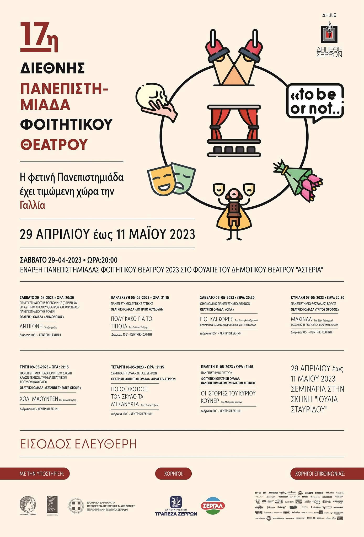 Δείτε το Πρόγραμμα της 17ης Πανεπιστημιάδας αναλυτικά εδώ στη σελίδα του Δη.Πε.Θε Σερρών
