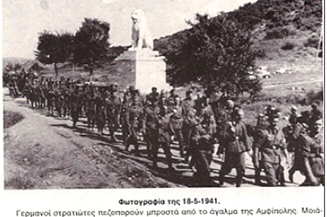 Ο περίφημος Λέων Αμφιπόλεως είναι έργο επιτάφιας πλαστικής του 4ου αιώνα προ κοινής χρονολόγησης, μνημείο πολεμικής δόξας και πράξης. Σύμφωνα με τον καθηγητή Δημήτρη Λαζαρίδη, στήθηκε προς τιμή του Λαομέδοντα από τη Λέσβο, ενός από τους αξιολογότερους τριηράρχους του Μεγάλου Αλεξάνδρου που εγκαταστάθηκαν στην Αμφίπολη, ενώ πιθανότερα βρισκόταν στην κορυφή του τάφου της Αμφίπολης[1].
