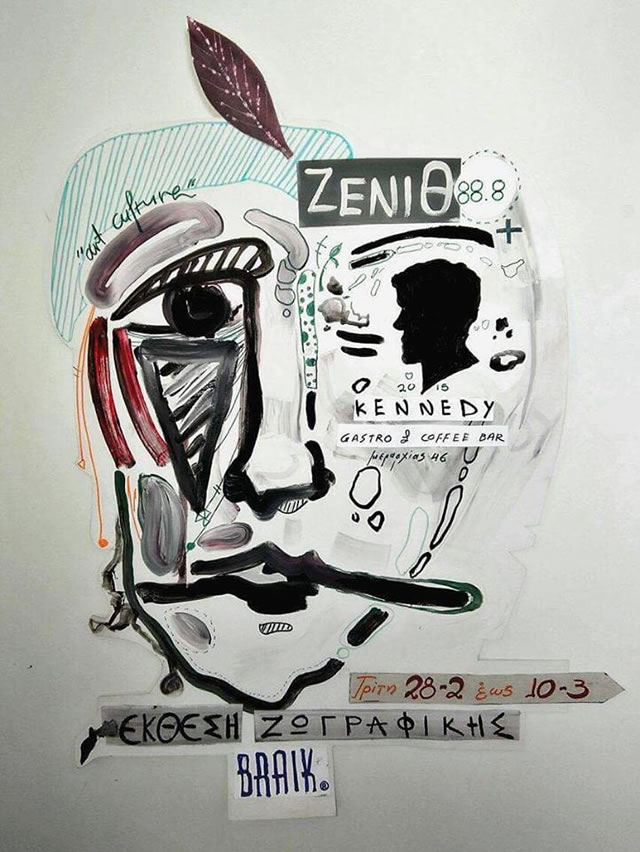 Ο ΖΕΝΙΘ 88,8 παρουσιάζει τον Σερραίο ζωγράφο ArtBraik στο Kennedy Gastro and Coffee Bar. Ο καλλιτέχνης θα παρουσιάσει τα έργα του, σε μία έκθεση, η οποία θα διαρκέσει από τις 28 Φεβρουαρίου μέχρι τις 10 Μαρτίου .